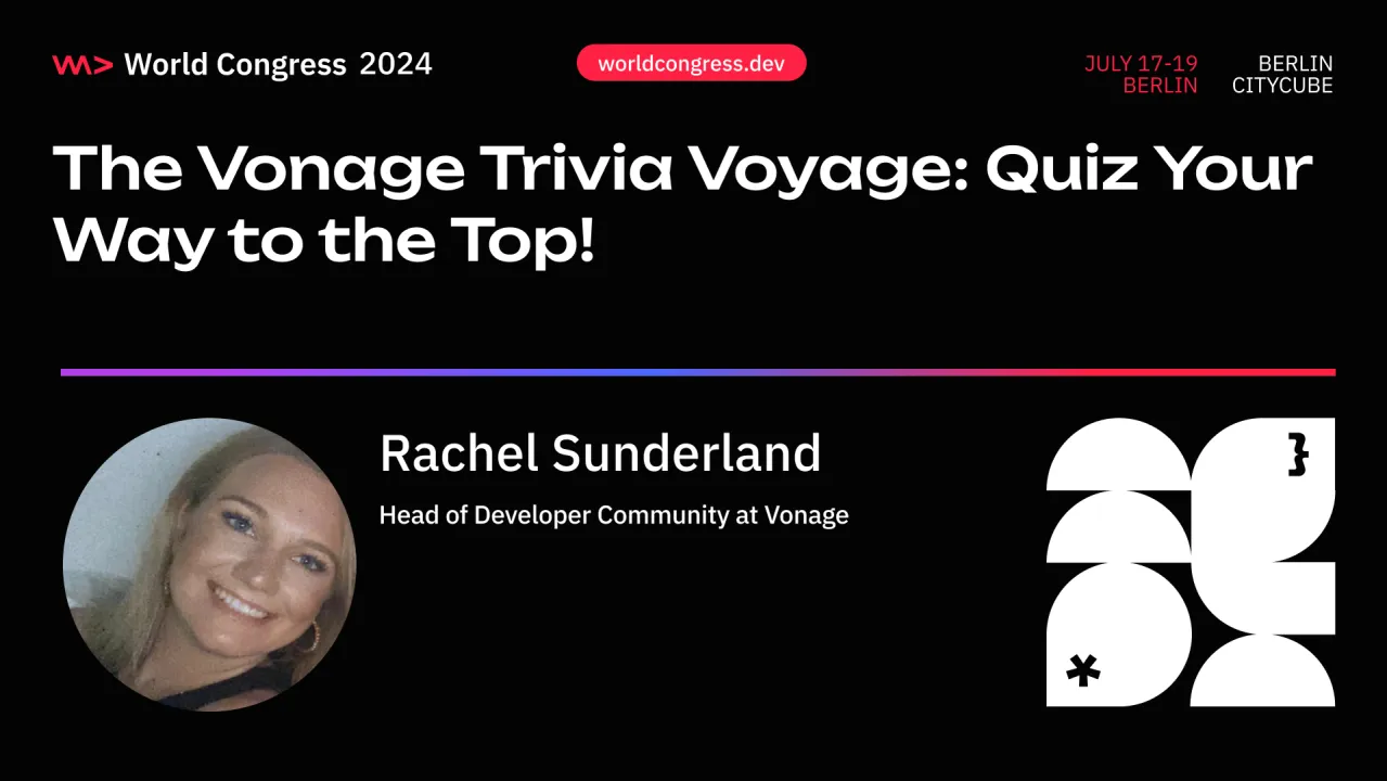 Test Your Knowledge with The Vonage Trivia Voyage: Quiz Your Way to the Top !Do you have what it takes to be in the hot seat, and win big with our popular gameshow? We will be asking ChatGPT to generate 10 developer trivia questions - the more you answer, the better the prizes! You'll have the help of three lifelines, powered by the Vonage Communications APIs. Come down to the Vonage booth at 18:10 local time on Thursday 18th July to take part. We will then be serving cold drinks from the booth while we wait for the famous WeAreDevs party to start.